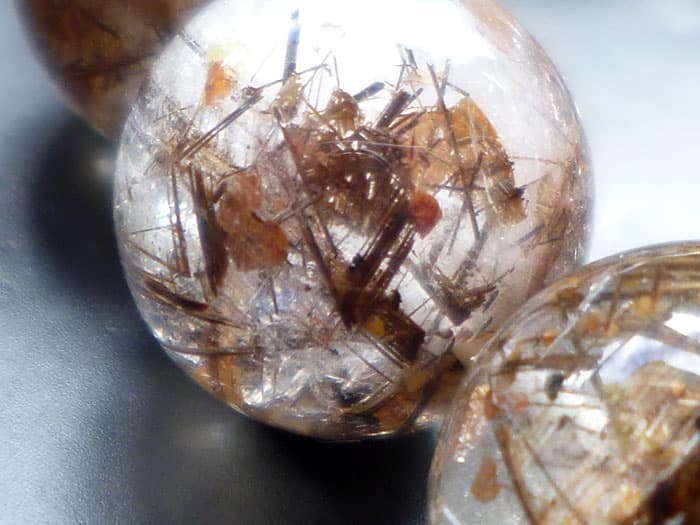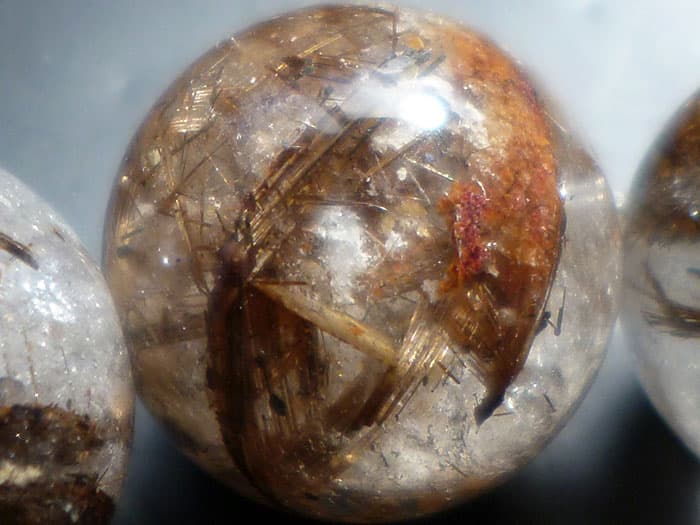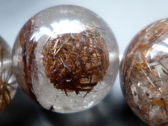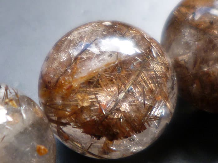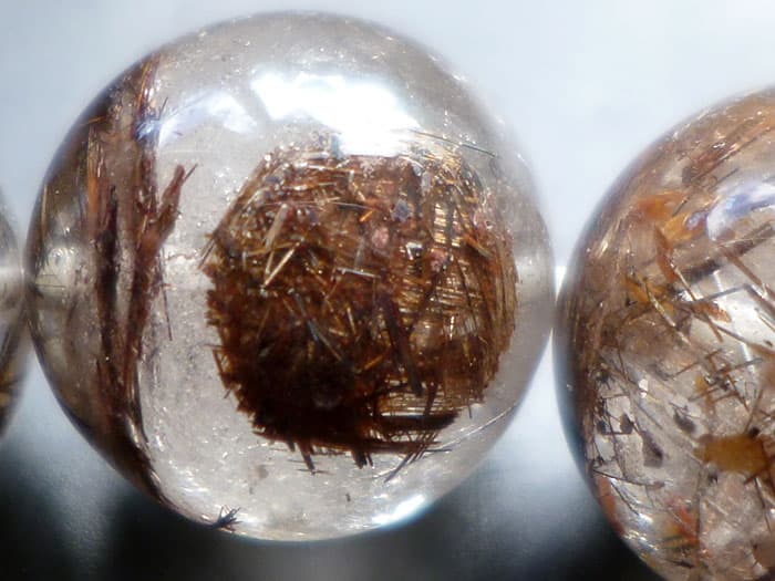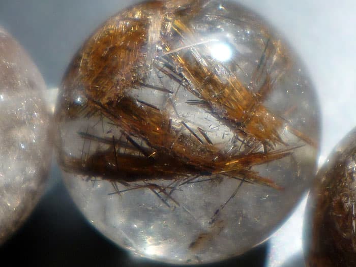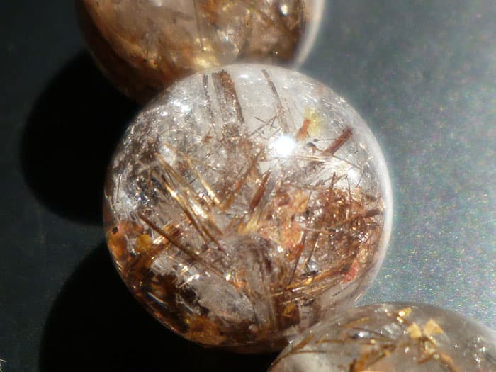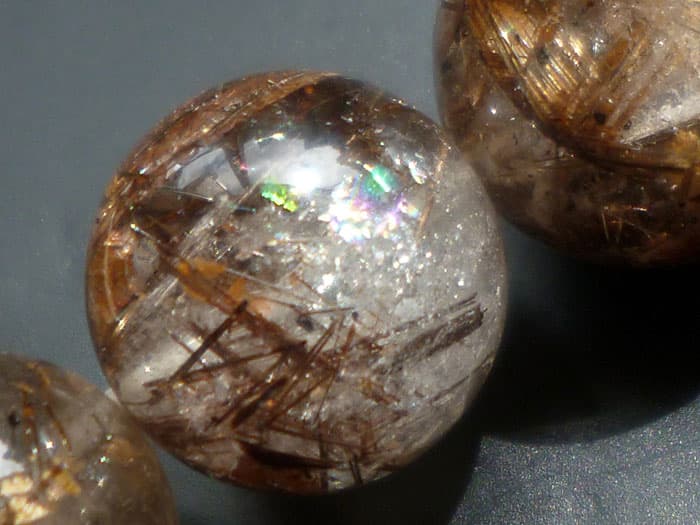 こちらのルチル水晶玉には輝く虹(レインボー)が出現しています。