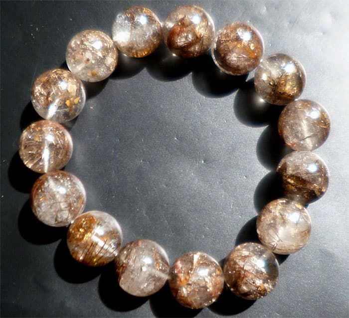 太陽の金針 虹入りレインボークォーツ ゴールドタイチン ルチルブレスレット018